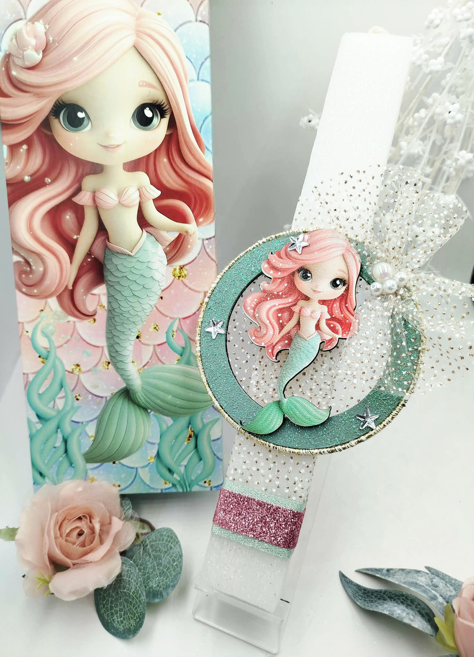 Λαμπάδα Γοργόνα με ξύλινη φιγούρα και τούλι στο ασορτί κουτί της!!
