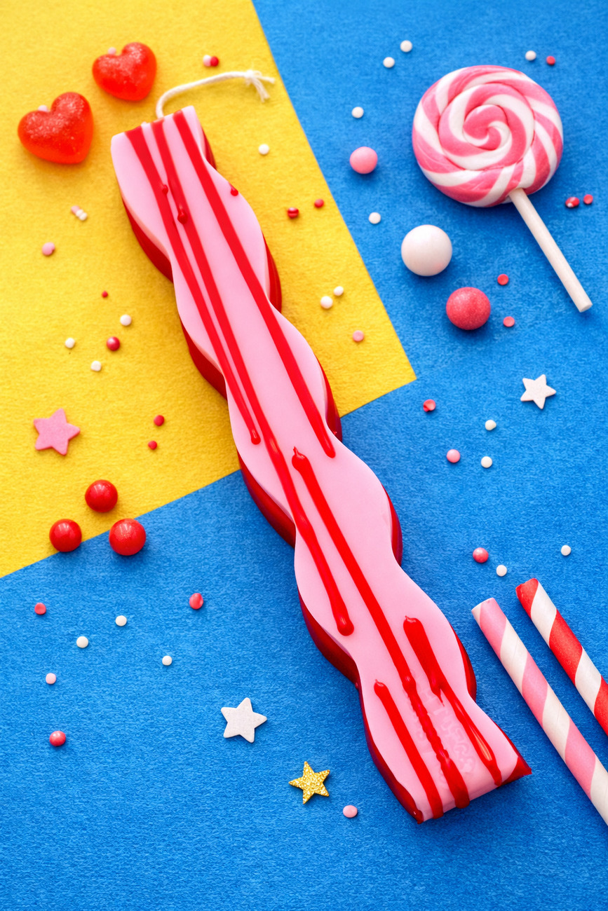 Μια λαμπάδα που δεν περνάει απαρατήρητη! Η χειροποίητη λαμπάδα είναι φτιαγμένη από κερί σόγιας, έχει ύψος 24 εκ. και ξεχωρίζει με το εντυπωσιακό ροζ φωσφοριζέ χρώμα της με κόκκινες πιτσιλιές, χαρίζοντας έναν άκρως παιχνιδιάρικο και μοντέρνο χαρακτήρα.